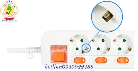 Còn được thiết kế lỗ cắm tự động đóng lại khi phích cắm được rút ra khỏi ổ. Đặc biệt an toàn tuyệt đối, nhất là đối với trẻ nhỏ.